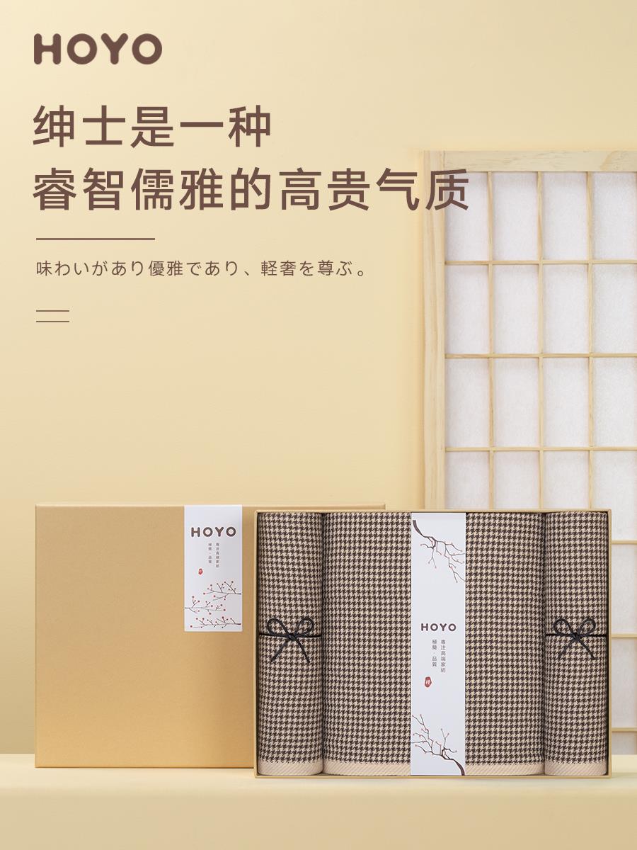 HOYO千鸟格樱花礼盒毛浴三件套7099