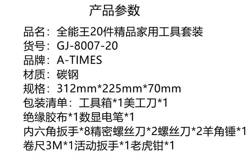 A-TIMES全能王20件精品家用工具套装GJ-8007-20