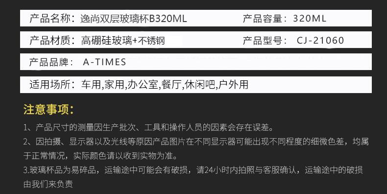 A-TIMES/逸尚双层玻璃杯B320ML/CJ-21060