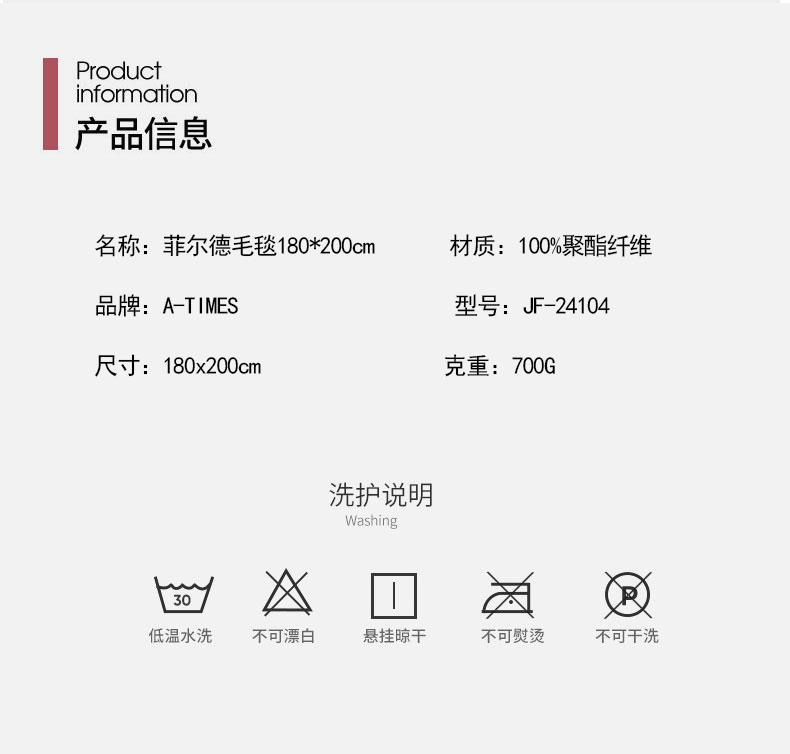 A-TIMES菲尔德毛毯180*200cm/JF-24104