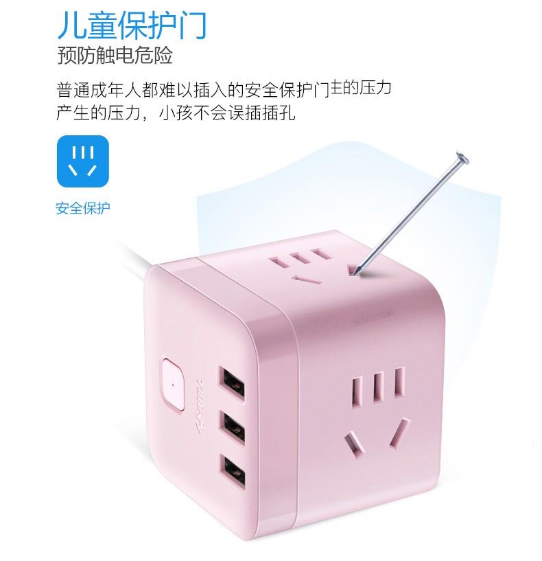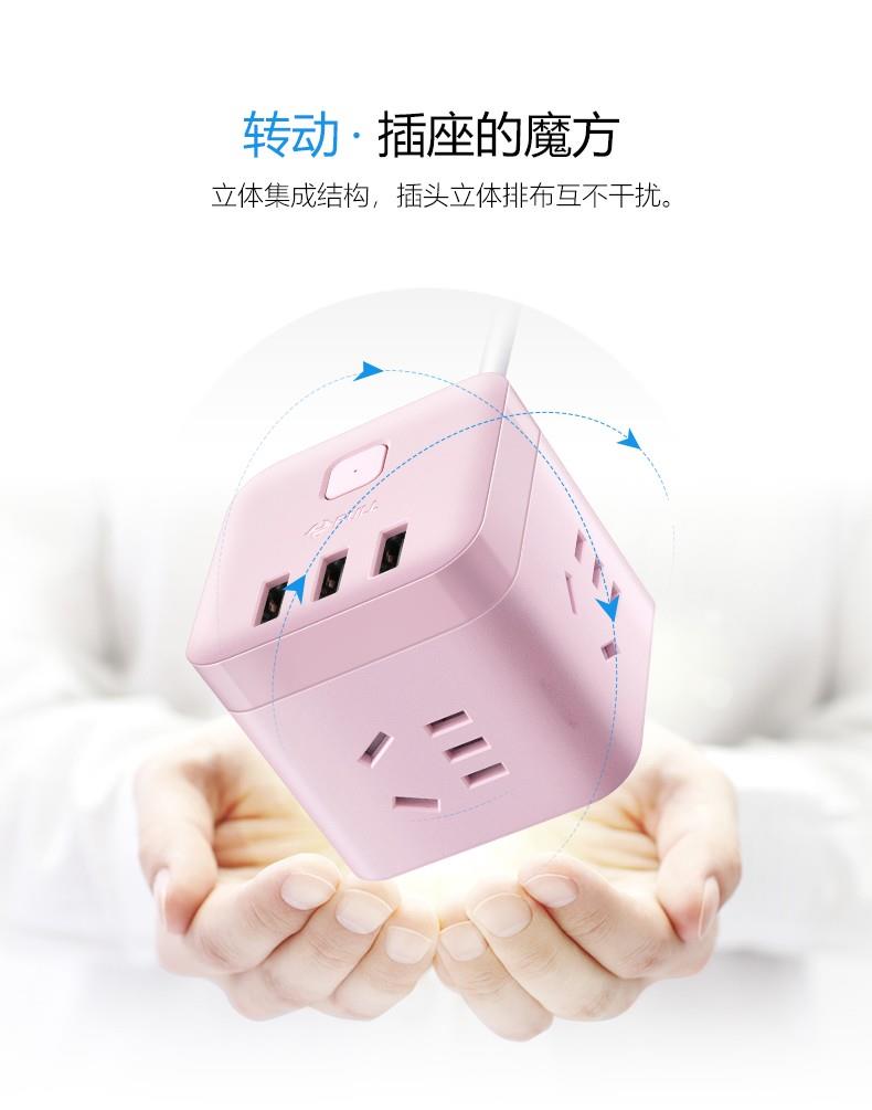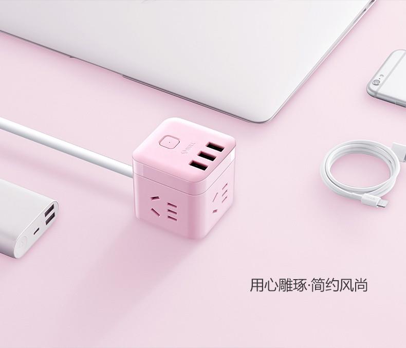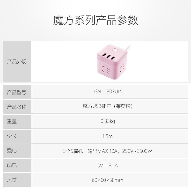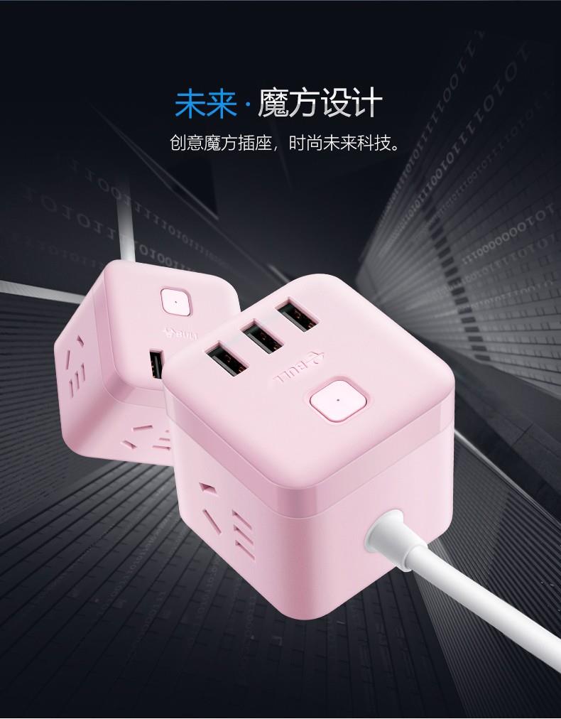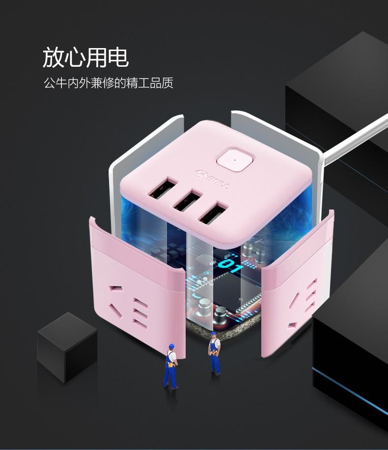 公牛魔方USB插座GN-U303UP(茱萸粉)