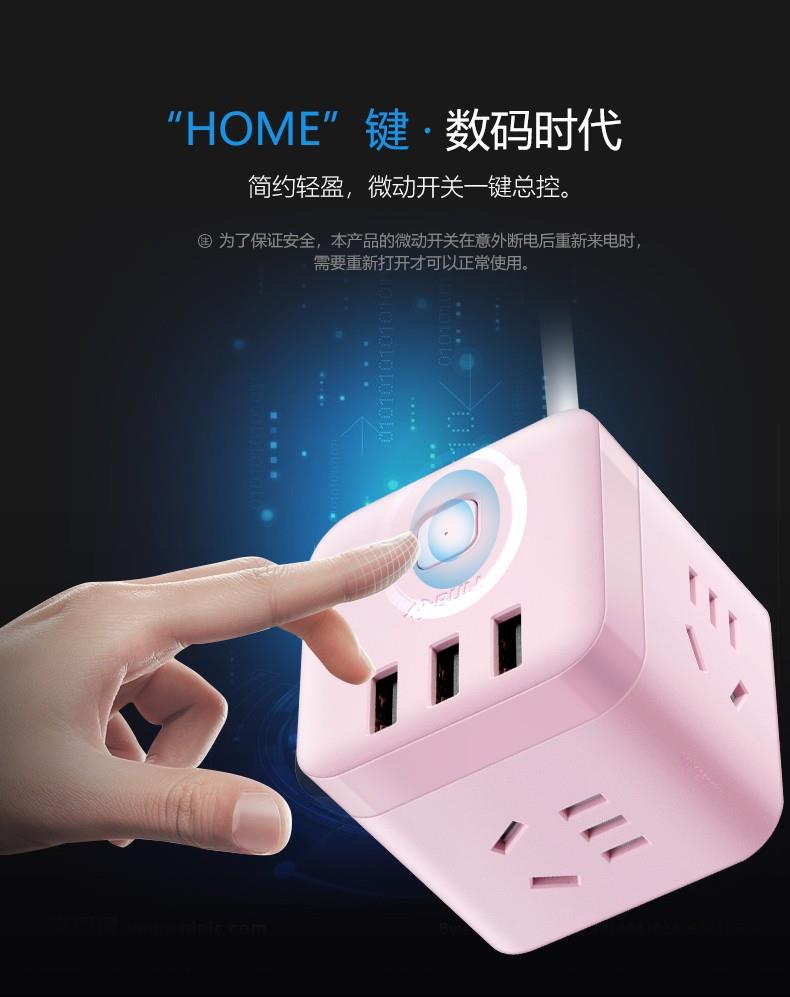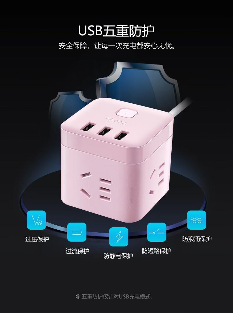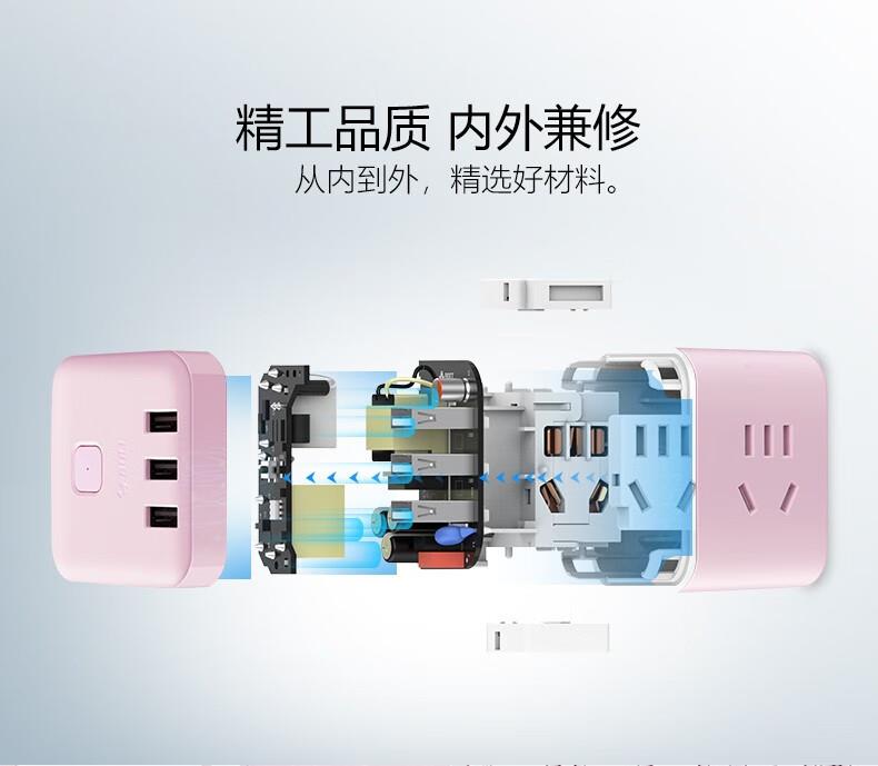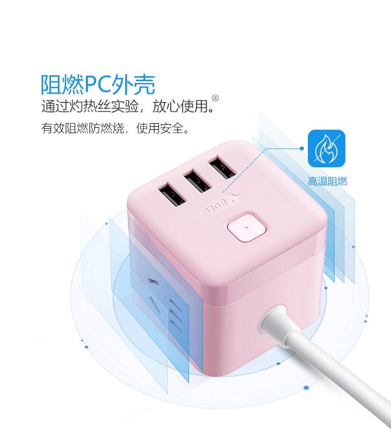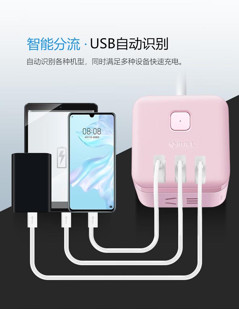 公牛魔方USB插座GN-U303UP(茱萸粉)