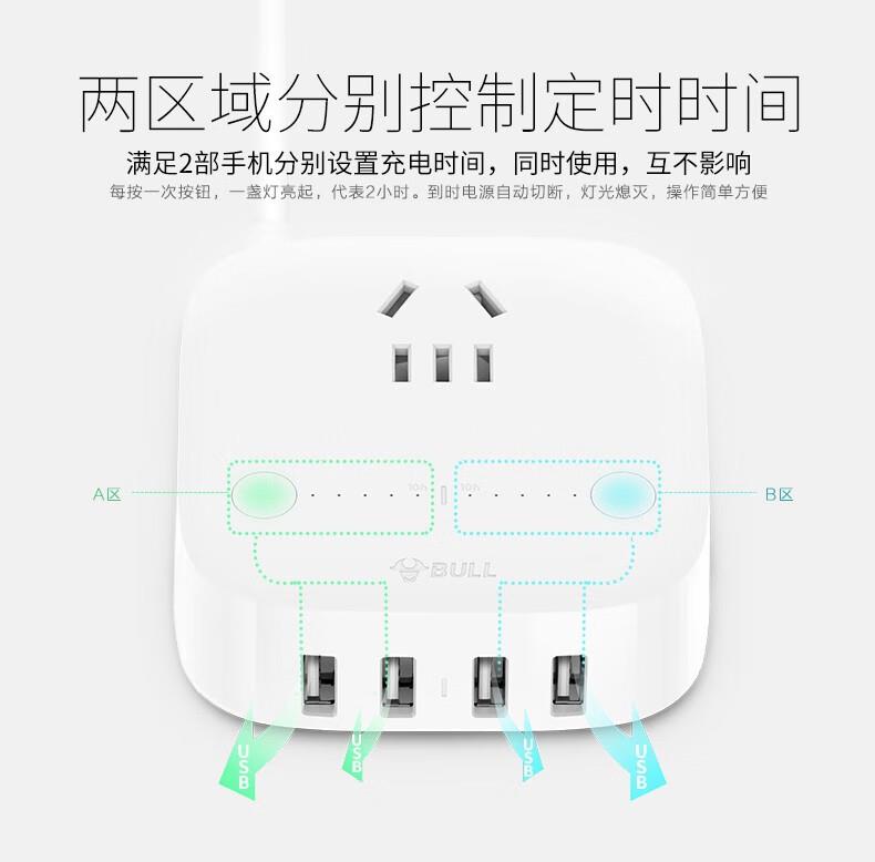 公牛U8201T(X)盒装USB定时充电插座1.5m