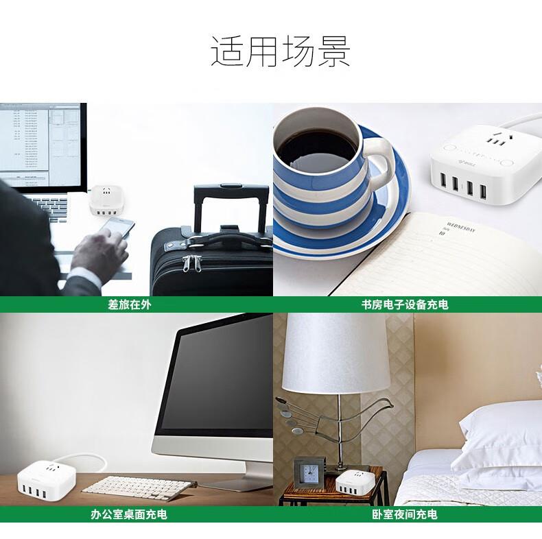 4个USB接口,5A总电流,最大单口输出2.4A,充电快速高效、安全稳定