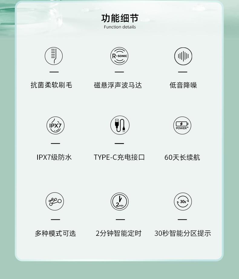 续航时间/次数 续航时间55-60天 (轻柔模式,每天2次,每次 2分钟)