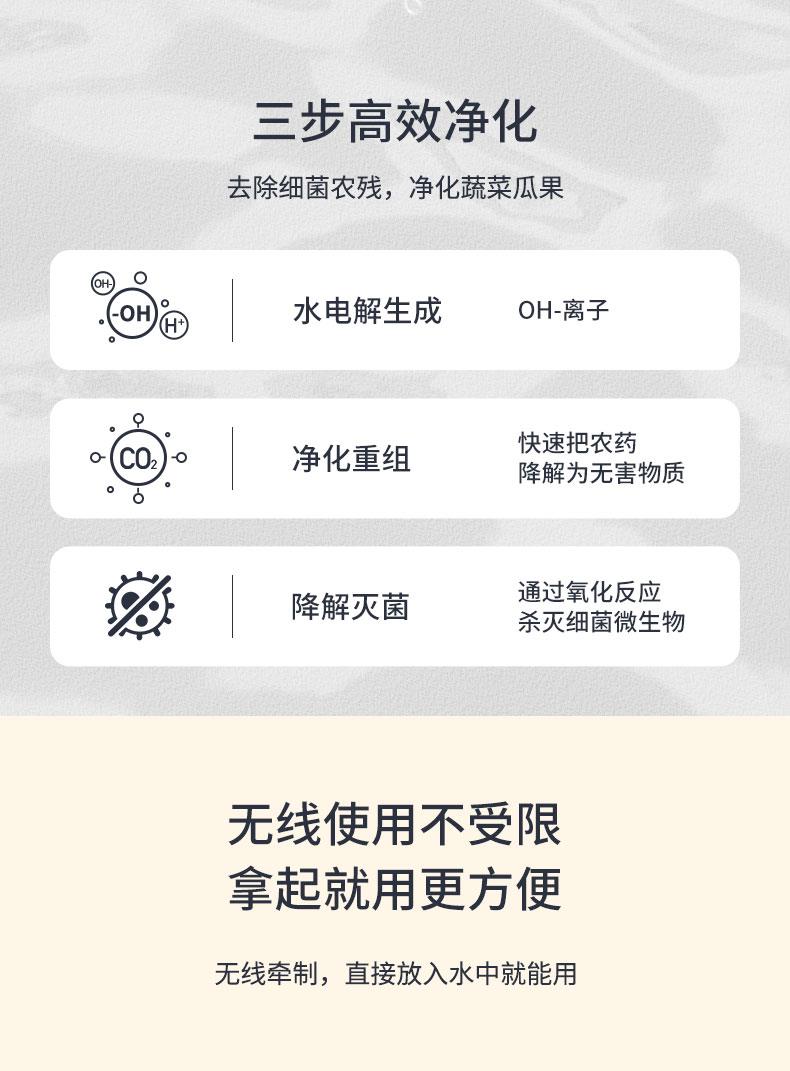 主要用途:蔬果祛除农残、海鲜杀灭细菌