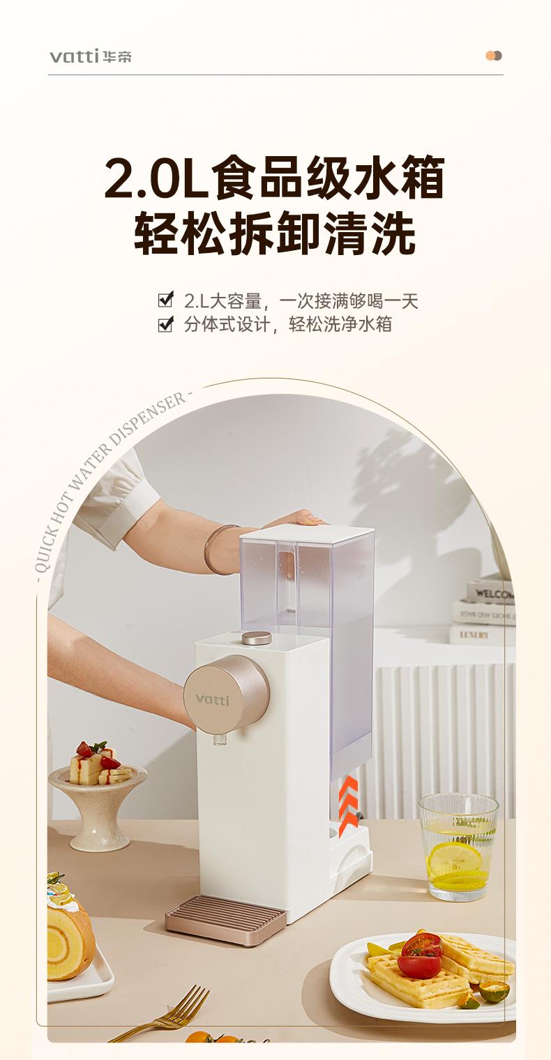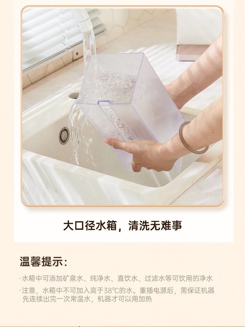 配置2L大容量水箱,水量清晰可见,可移动拆卸水箱,加水不受限,水电分离更安心,提拿即洗更方便