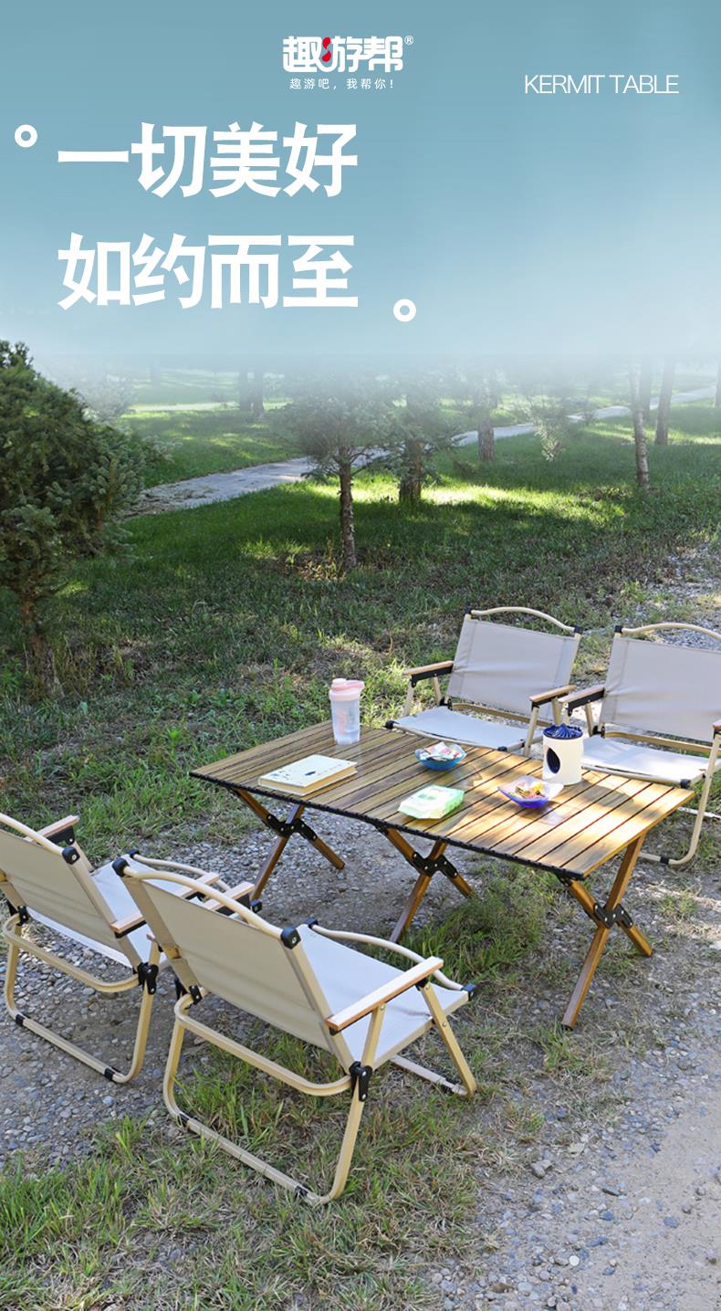 趣游帮120方管脚架木纹蛋卷长桌(Y49)