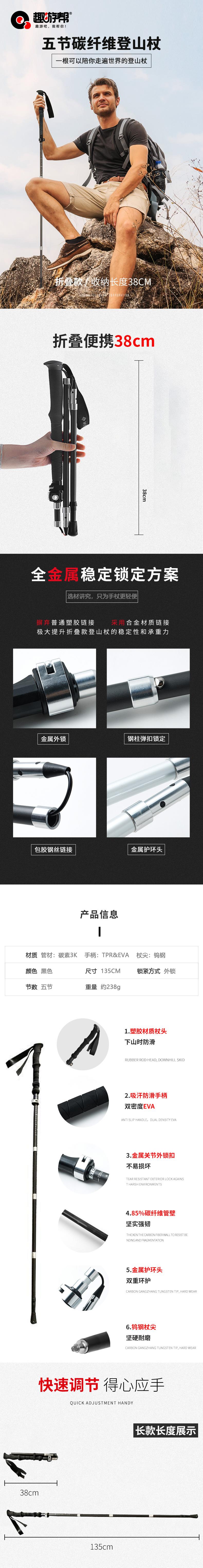 趣游帮超轻可折叠碳素登山杖(Q613)
