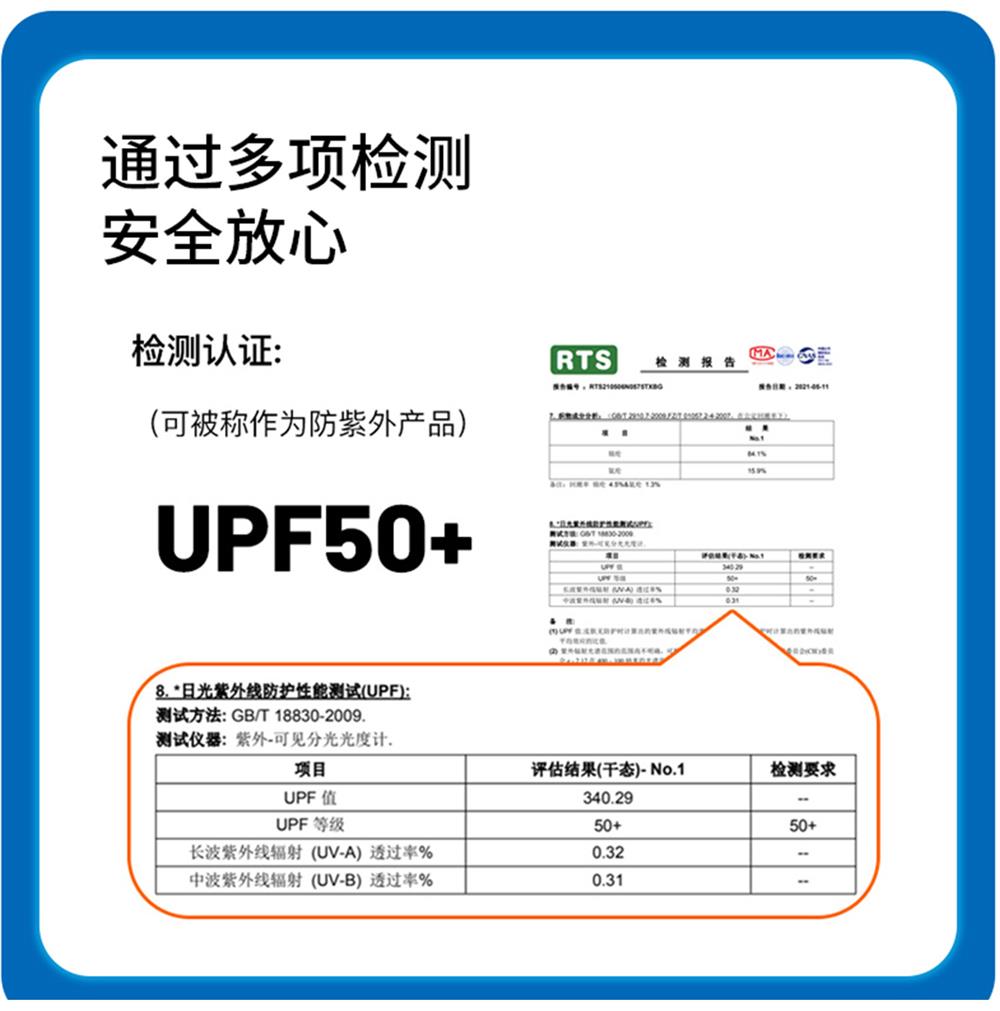 4、UPF 50+ 专业防晒检测认证