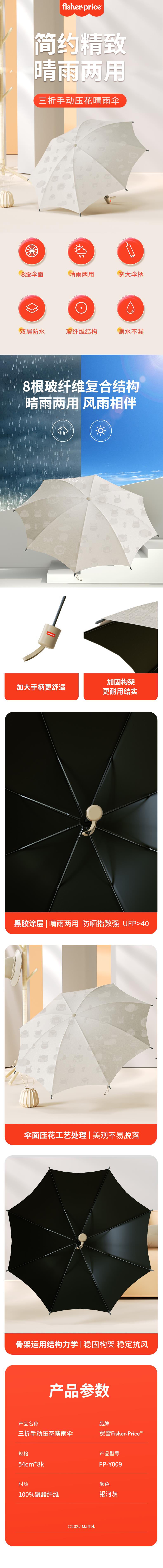 费雪(Fisher-Price) 三折手动压花雨伞FP-Y009