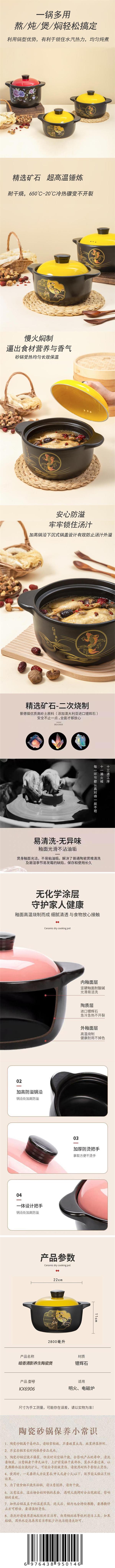 康厨亚KX6906暗香清影养生陶瓷煲2.8L 全包裹定型泡沫+外箱包装