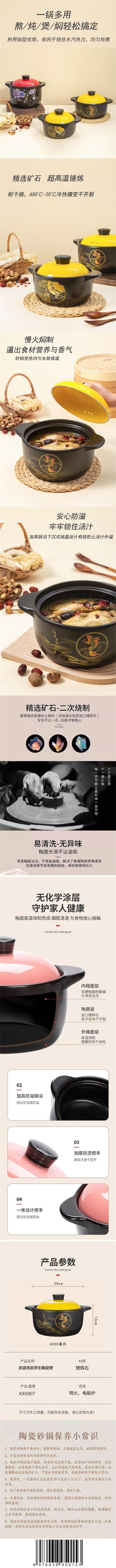 康厨亚KX6907欢喜鱼跃养生陶瓷煲4.6L 全包裹定型泡沫+外箱包装