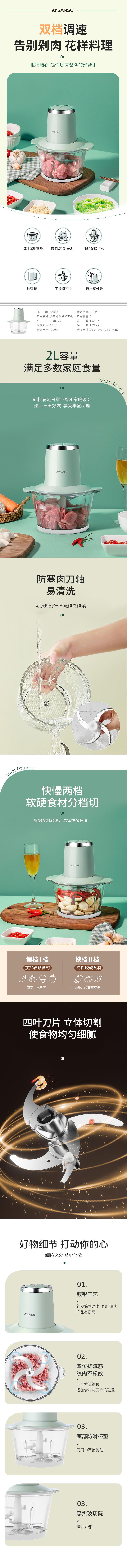• 300W大功率强力电机旋风秒绞,2升大容量一次满足全家需求