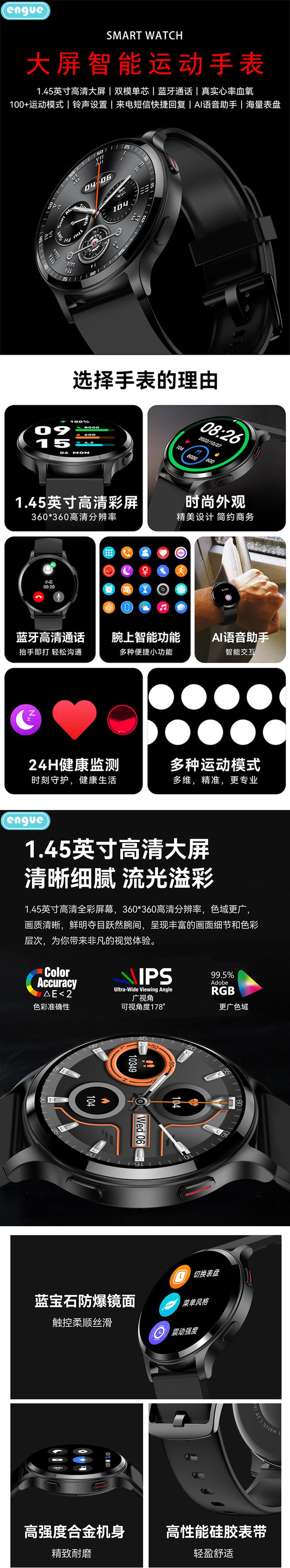 engue恩谷 全触高清血氧智能手表 EG-T11B通话版
