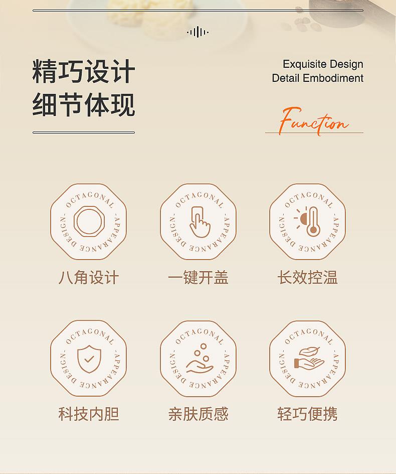 · 时尚八面杯身,精心打磨设计,高端