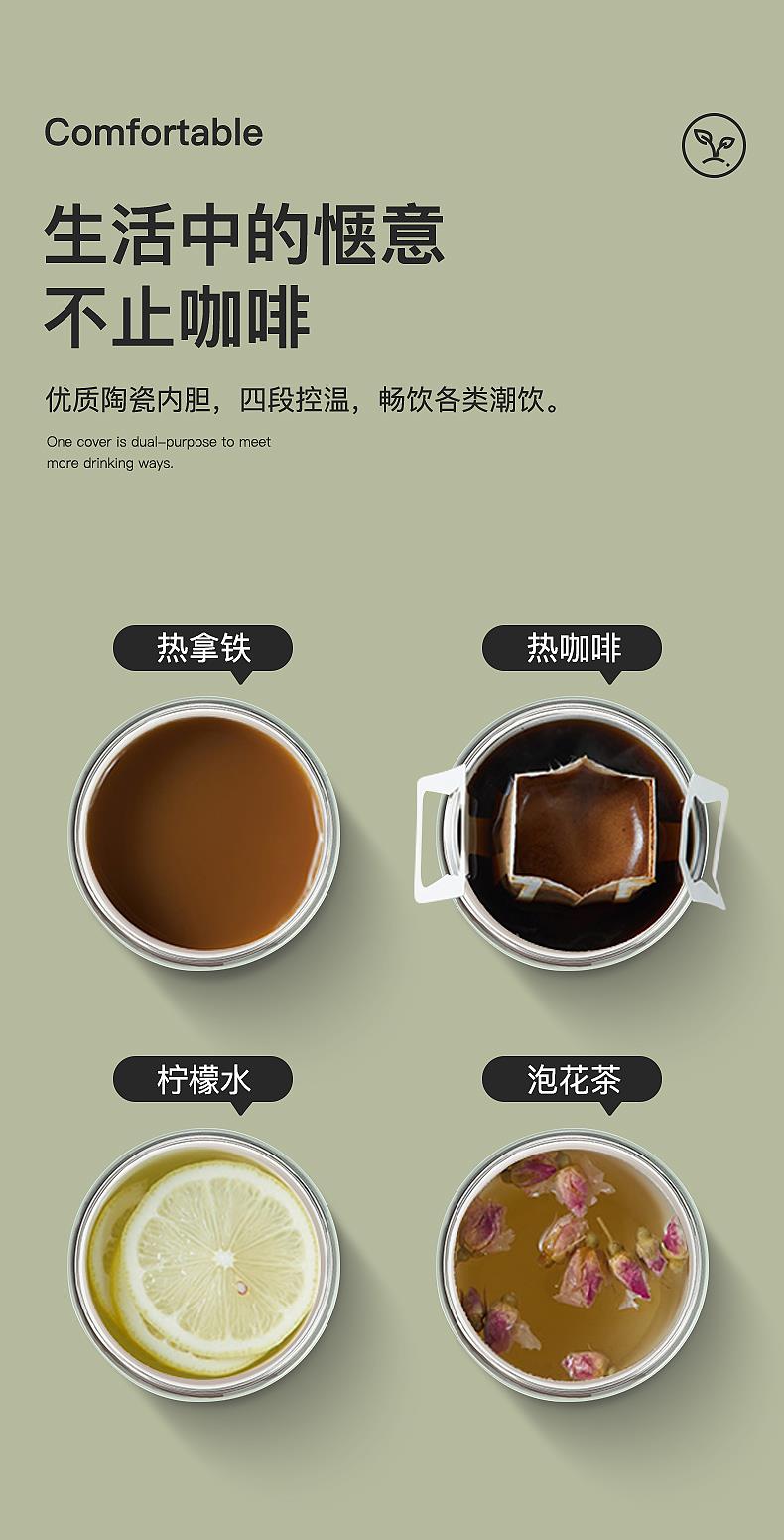 · 316不锈钢一体成型内胆,热茶、冷饮