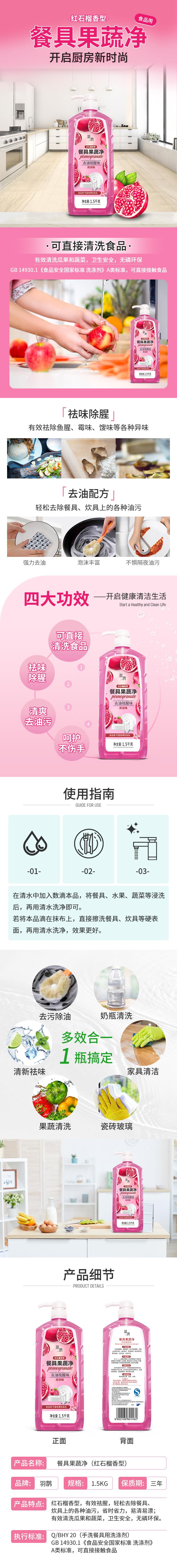 羽鹊餐具果蔬净 去油祛腥味 红石榴香型1.5 kg/瓶