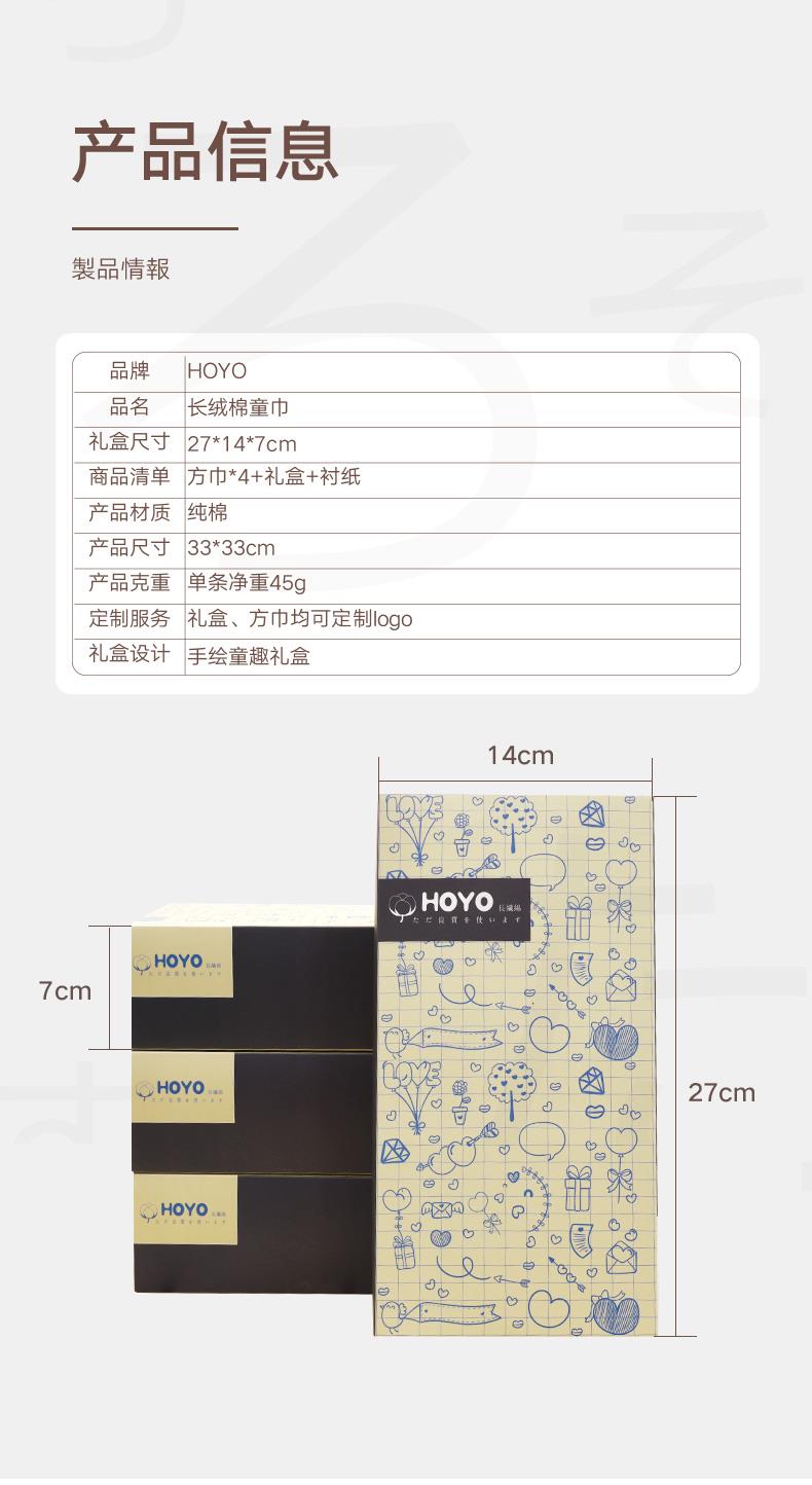 包装形式:手绘童趣礼盒方巾4条装