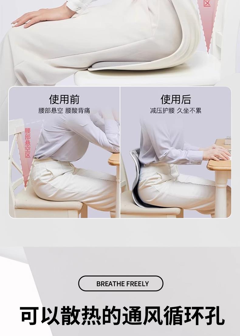 镂空通风透气,久坐不闷热,长时间为您保持一个舒适的坐姿环境;