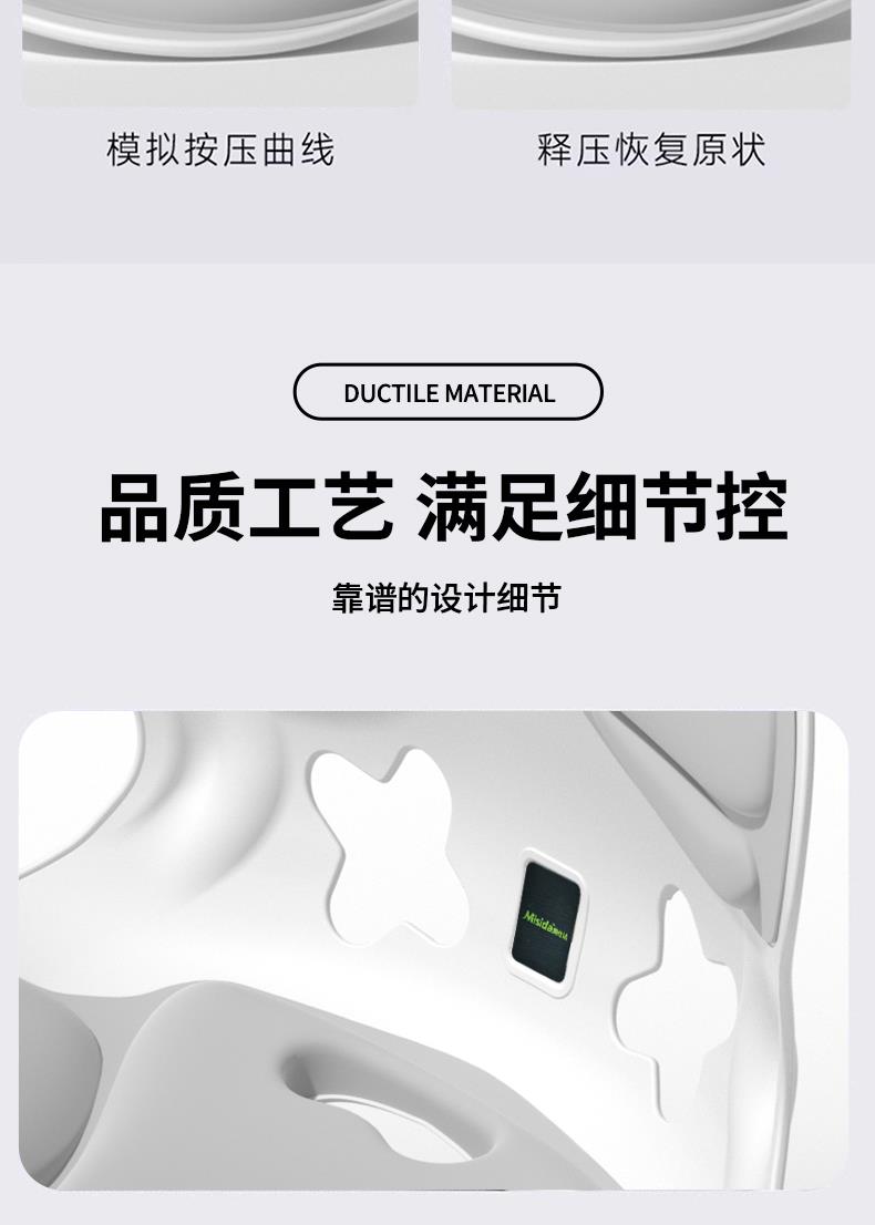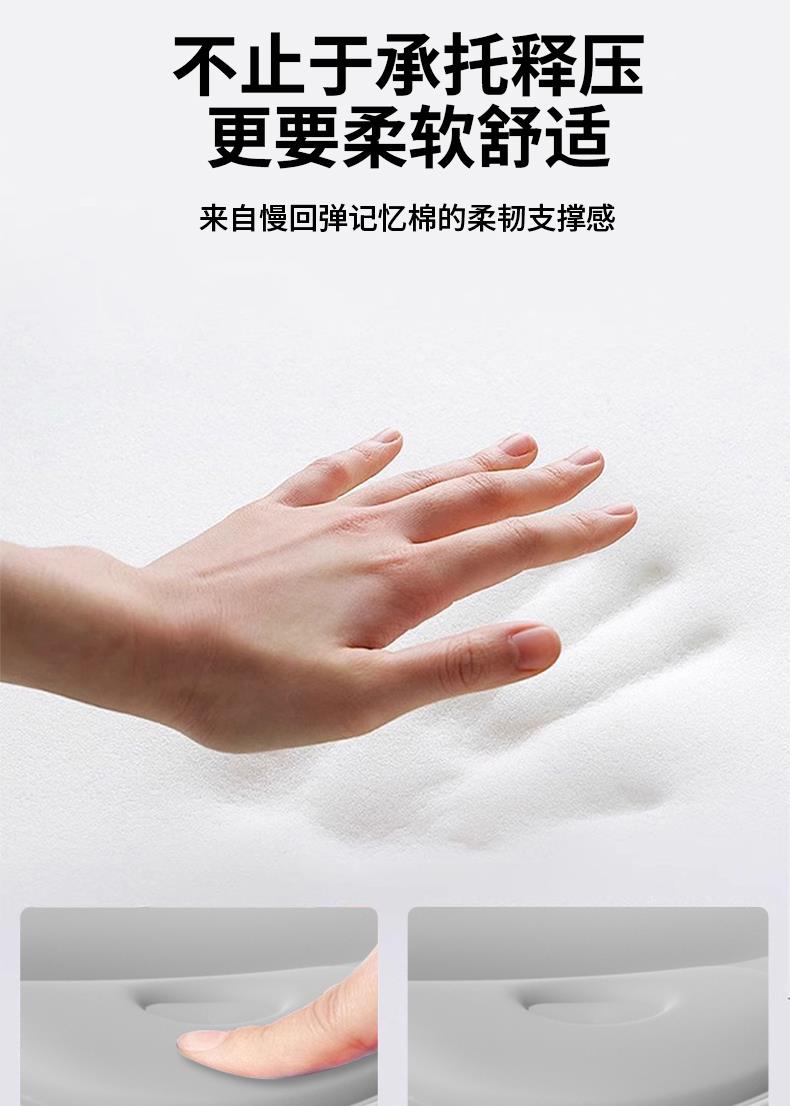产品来自慢回弹记忆棉的柔韧支撑敢,模拟按压曲线,释压恢复原状。