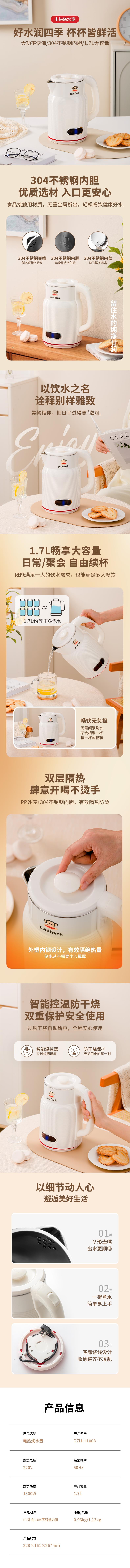 大嘴猴DZH-H1008电热烧水壶 功率1500W
