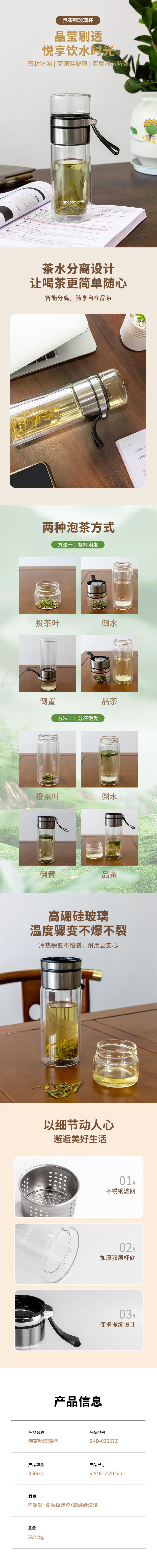 思嘉思达 SKD-0205YZ 泡茶师玻璃杯 350ml (单位: 个)